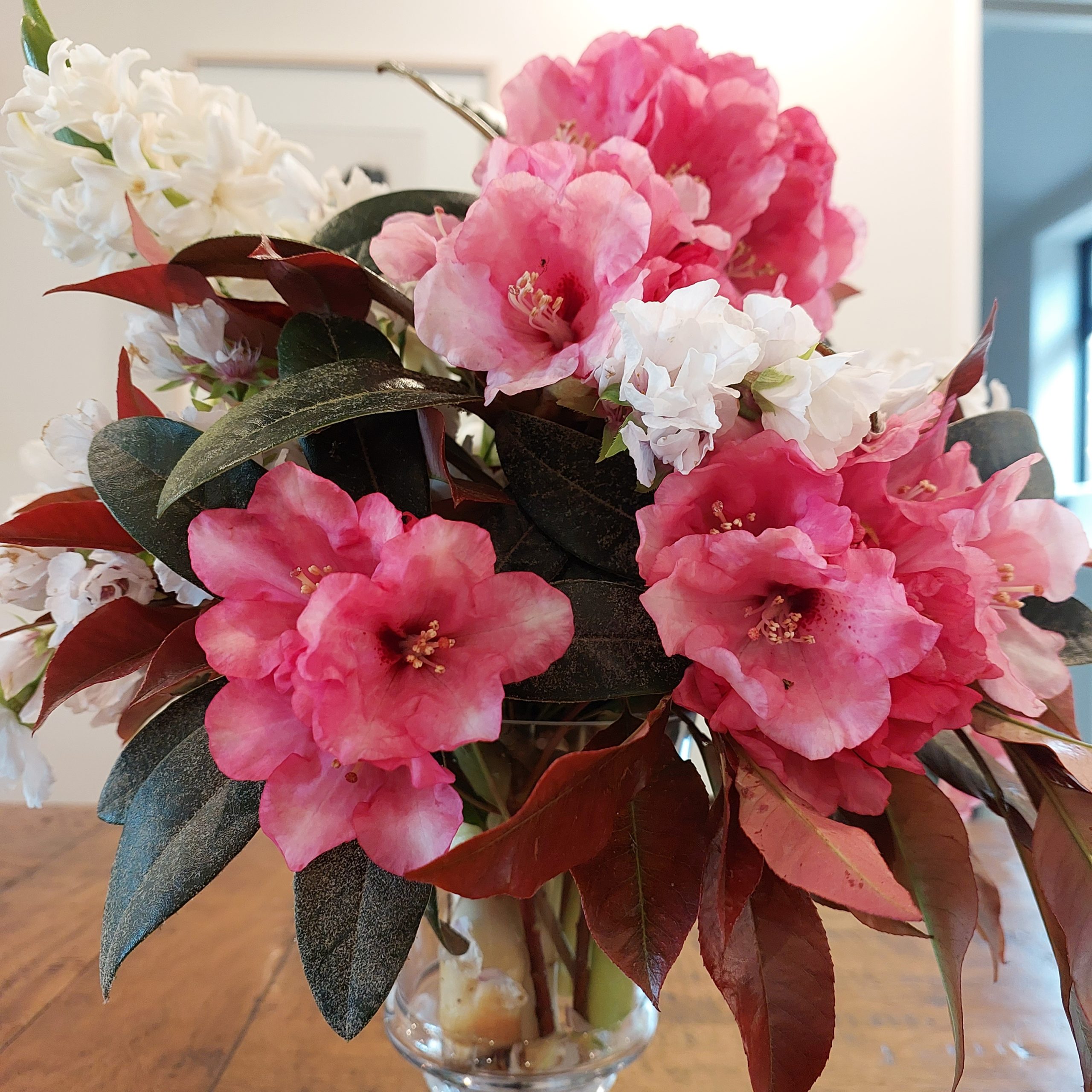 Their bold petals and intricate structure add an unexpected touch of elegance and charm, proving that these beautiful flowers can truly shine in any setting. Whether in bud or full bloom, rhododendrons bring a fresh, nature-inspired appeal to your table, elevating any occasion with their unique beauty.