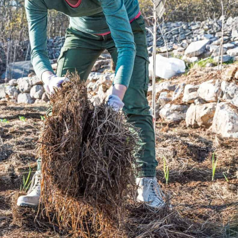 Weed growth usually slows down during the Autumn, but this year they’re on a mission to prove me wrong! That’s why I’m going full-on with a suffocating technique—laying down cardboard and pea straw to block the light and stop the weeds from germinating. And as I’m doing this around the base of my older plants, I’m also giving them a good sprinkle of slow-release fertiliser to keep them strong and healthy.