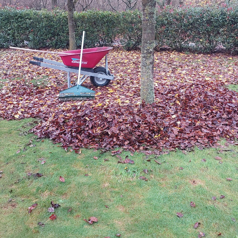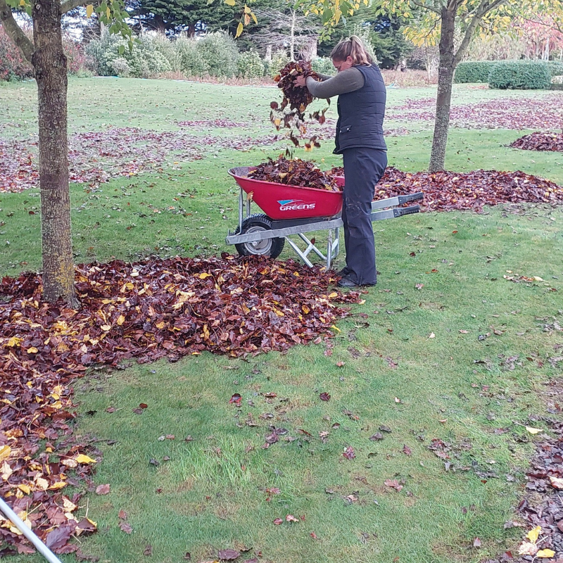 - Methodically raking up the leaves normally I could use the lawn mower, but it’s so wet, back to the old fashioned wheel barrow and rake.