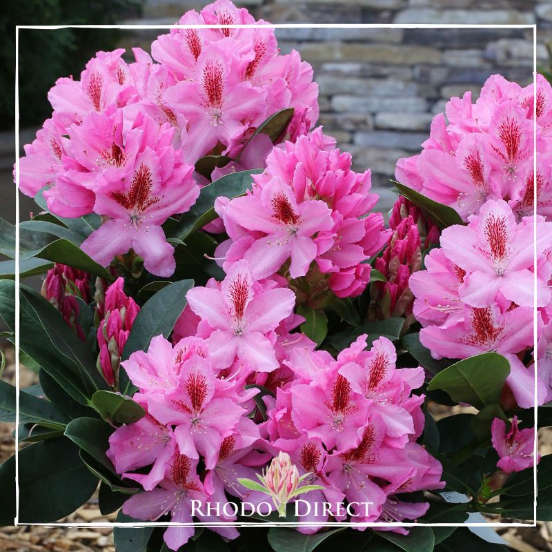 Rhododendron Furnivals Daughter flowers are pink with deep red blotch in the upper lobe of each flower Height 1.5m Flowers in October