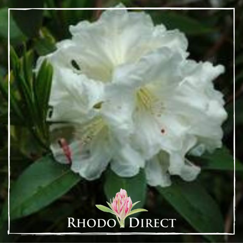 Rhododendron Kings Cream has creamy white flowers in November. Height1.5m